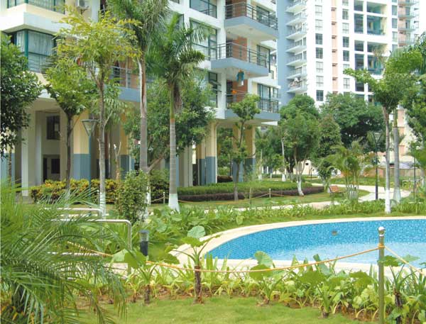 小區(qū)請久負盛名的澳大利亞Terrenr Craft景觀建筑設計公司進行景觀園藝設計。在17層的酒店式公寓,即使是在高空中,綠色依然是不可缺少的生活原色,獨創(chuàng)的多層次空中綠化,每三層都有一個空中花園,讓所有的住戶都能夠輕易的親近和享受綠色。